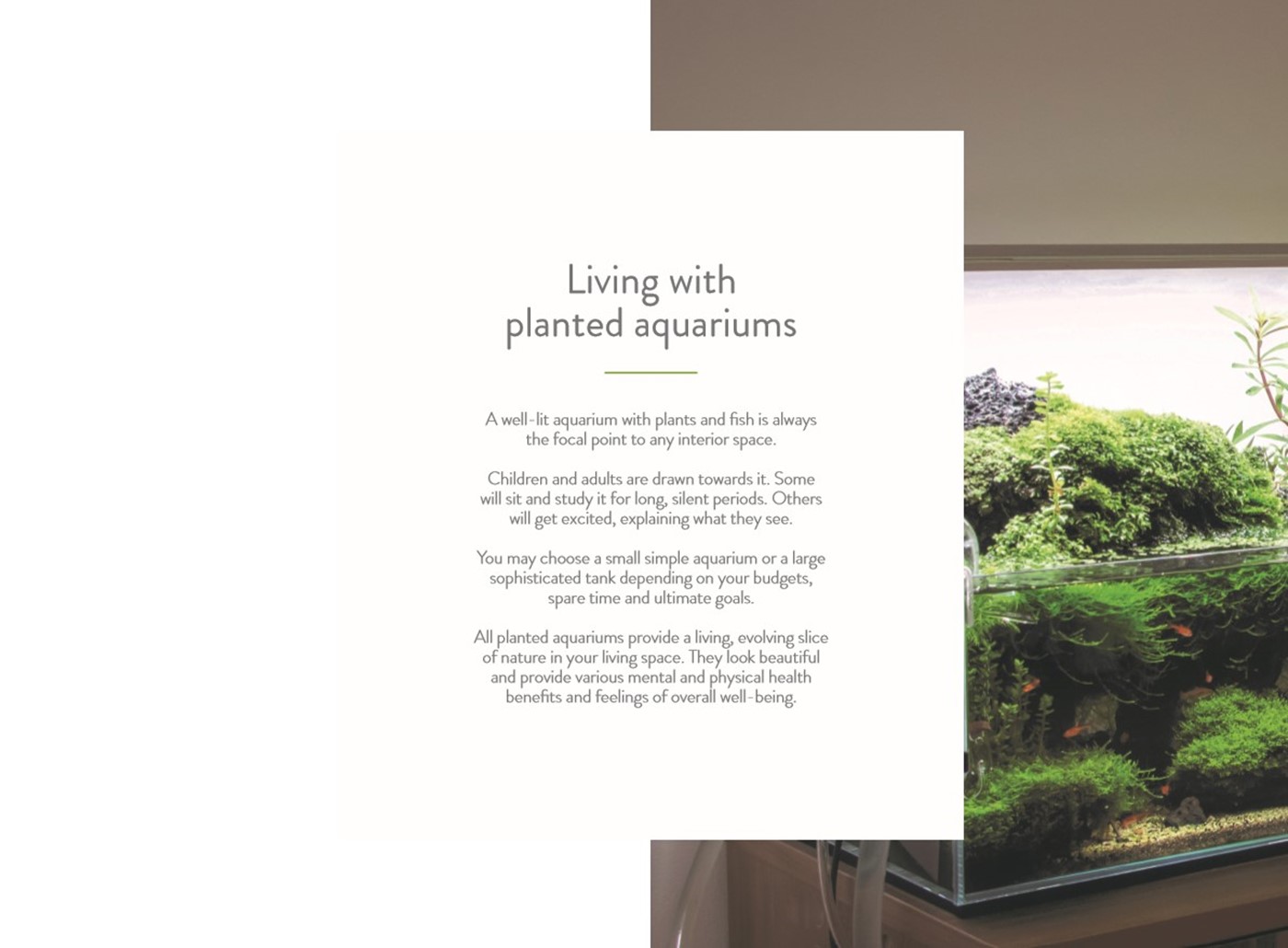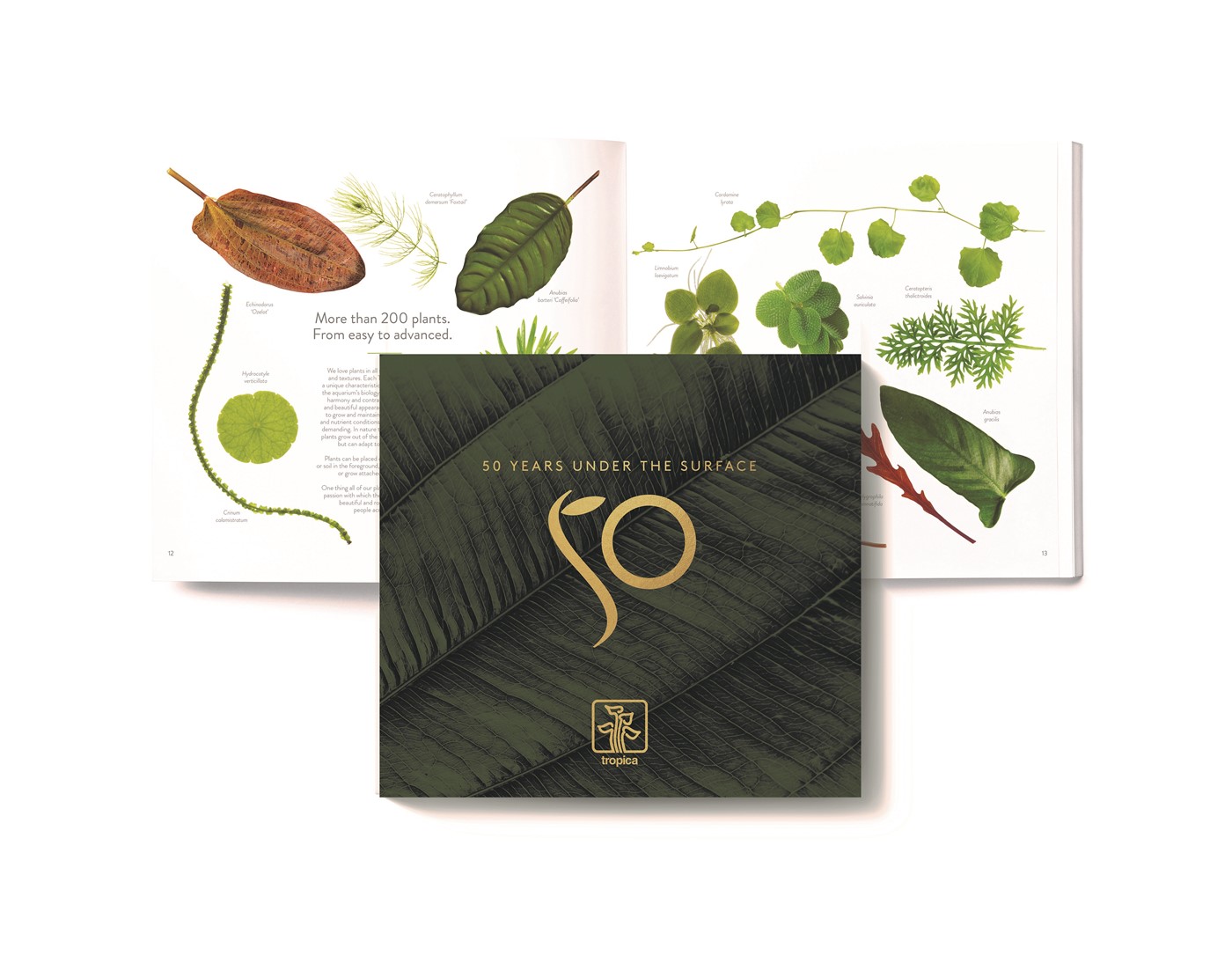The 50 year anniversary book takes you through a journey of discovery, from the early 70's and the foundation of the company to present days and eventually looking into the future. Throughout the book you'll get to discover Tropica, the hobby and the community whilst also acquiring a few tools to navigate within the aquascaping.
