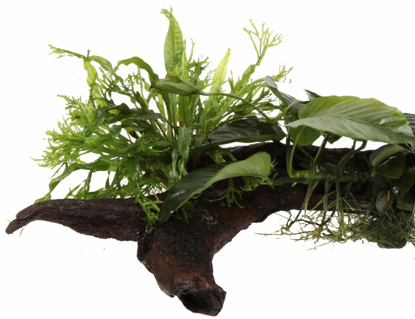 Aquadecor comes supplied as plants attached to either lava rock or bogwood. There is also the option to use bankwood that has a suction cup attached to the wood allowing it to be fixed to the aquarium glass at various heights in the aquarium.