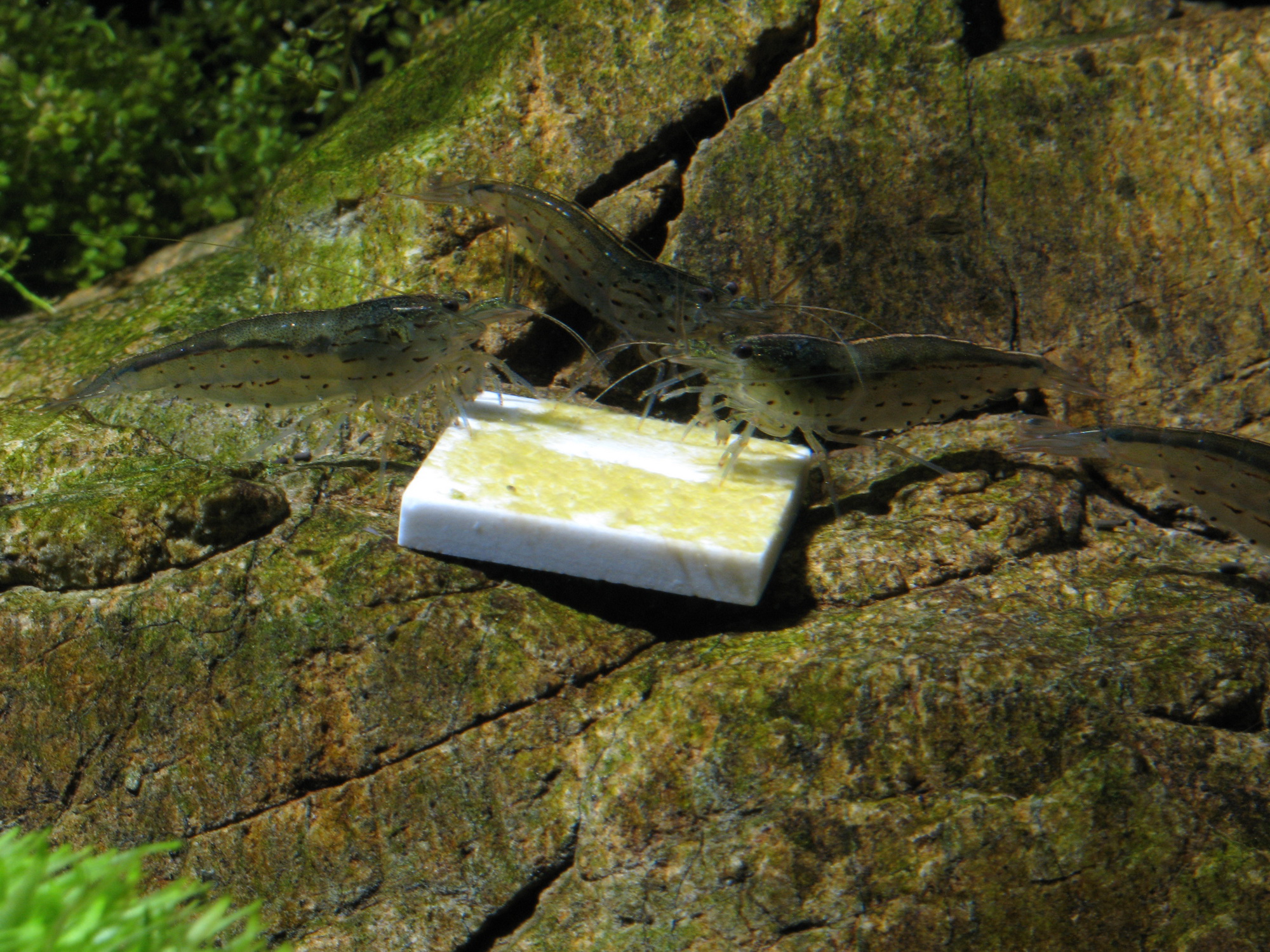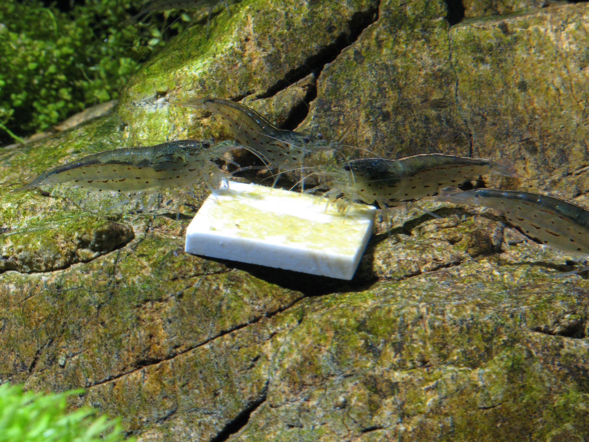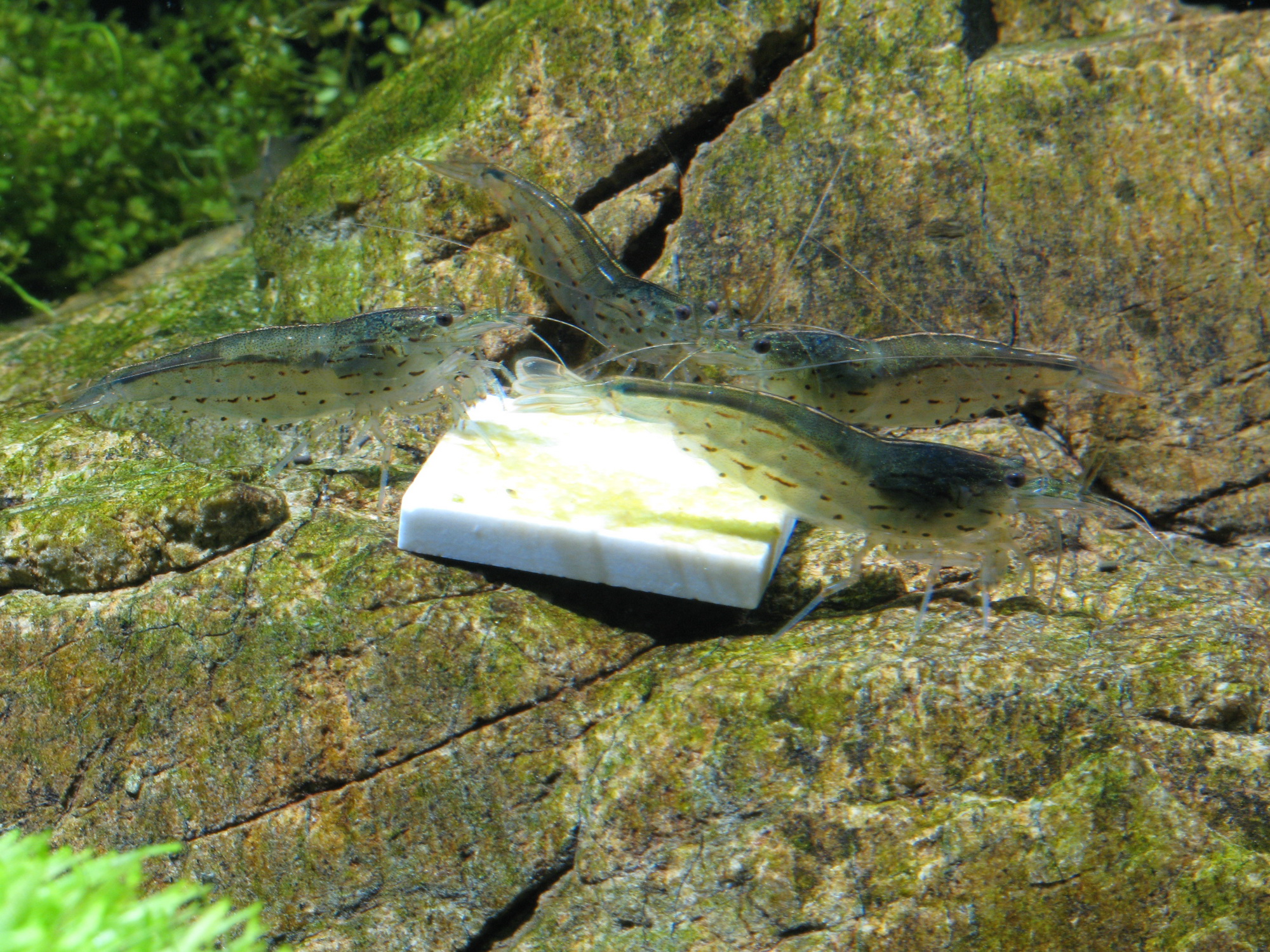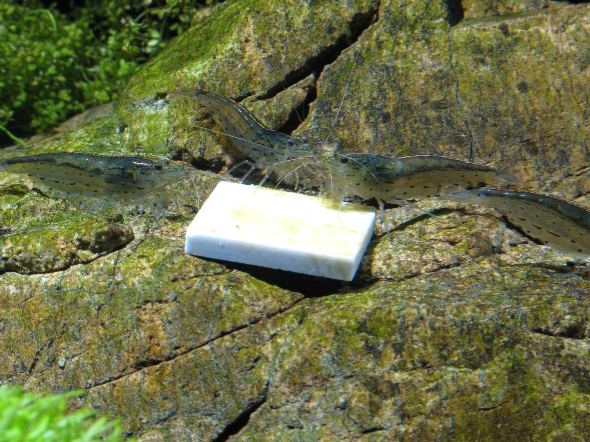 A biofilm consisting of green algae and diatoms were initially cultivated on small ceramic tiles. A tile with algae was subsequently put into an aquarium with a certain number of Amano shrimps, which were then allowed to eat for a certain number of hours. Whatever the shrimps did not manage to eat within the measured time was subsequently measured/weighed, based on how much algae there was on the tile to begin with, and how much was left after the shrimps had been allowed to eat. We were then able to determine how much they had managed to eat.