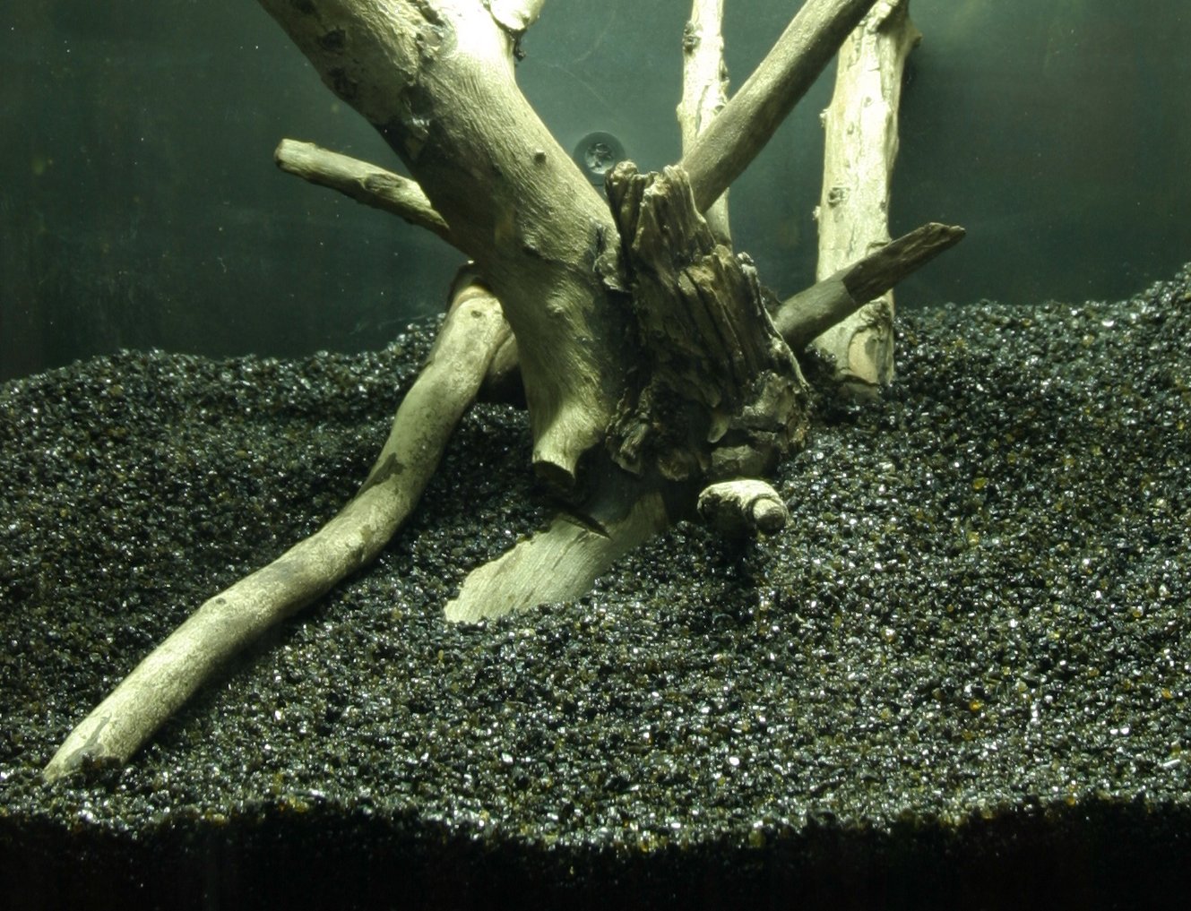 By the start-up of the aquarium, the substrate is spread with the main part into places, where plants with strong roots are to be planted later. After that, the gravel is distributed over the entire ground of the aquarium. The gravel is divided sloping upwards and backwards with at least 3-4 cm in the front and 6-8 cm in the back. In places where big rocks are to be placed later, a thin styrene plate can be placed before the substrate and gravel in order to protect the glass bottom.