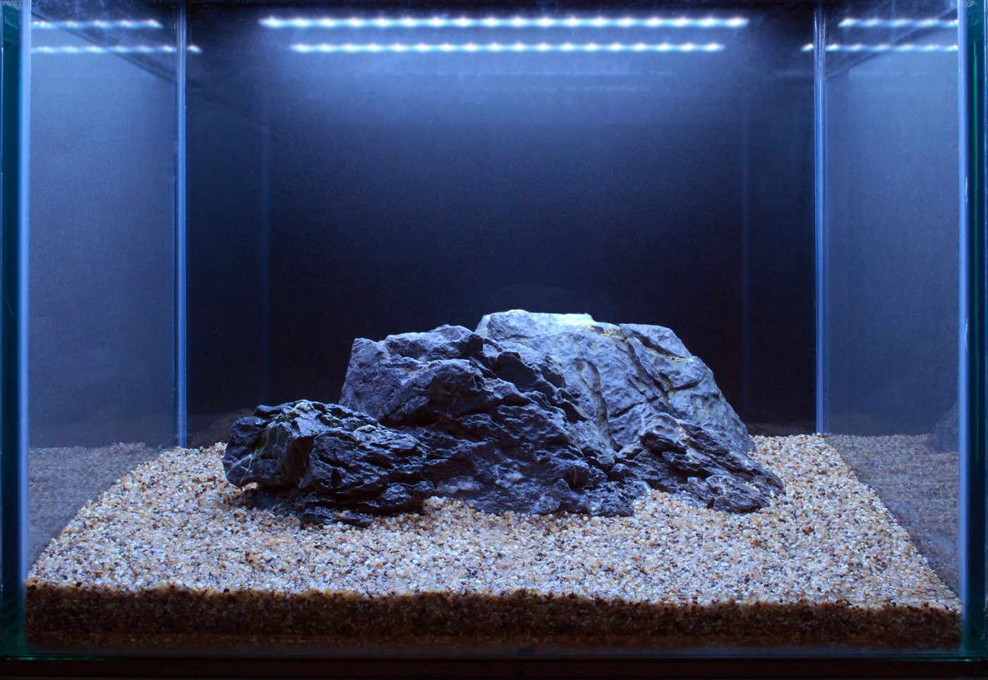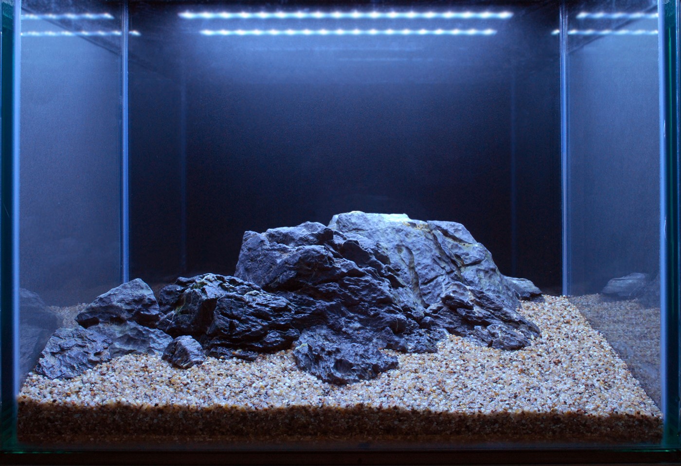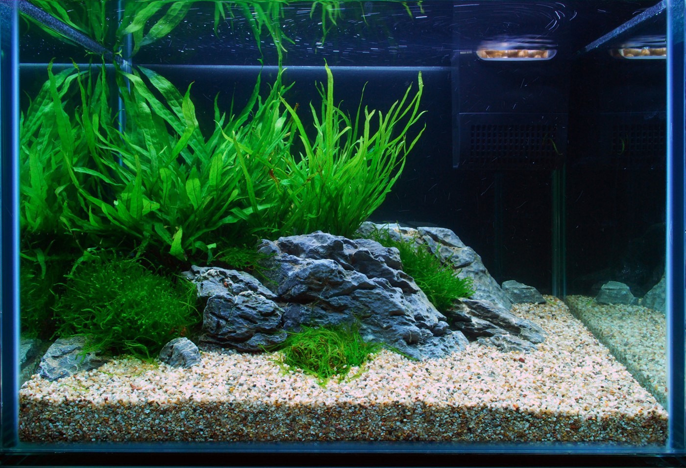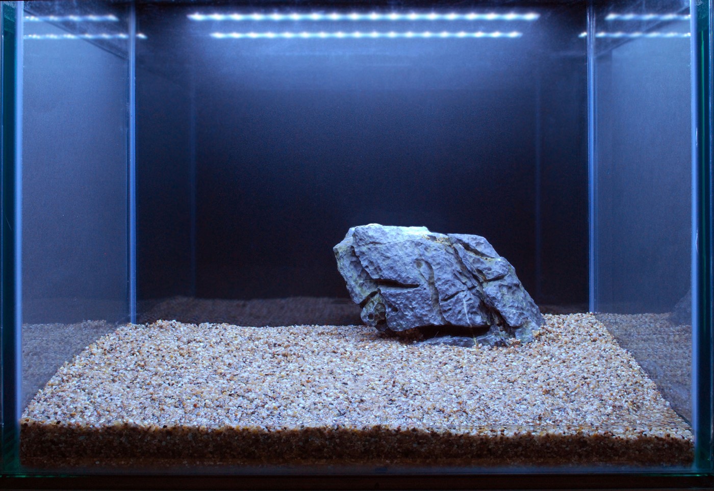 I set up this aquarium for my toddler as he had shown a keen interest in Guppy. I wanted the setup to be both easy to install and to maintain. I primarily used Tropica AquaDecor to speed up the planting process and chose species that would thrive without CO2 injection. By adding a cleaning crew that consisted of 5 Amano shrimps and 4 Otocinclus catfish maintenance was kept to an absolute minimum.