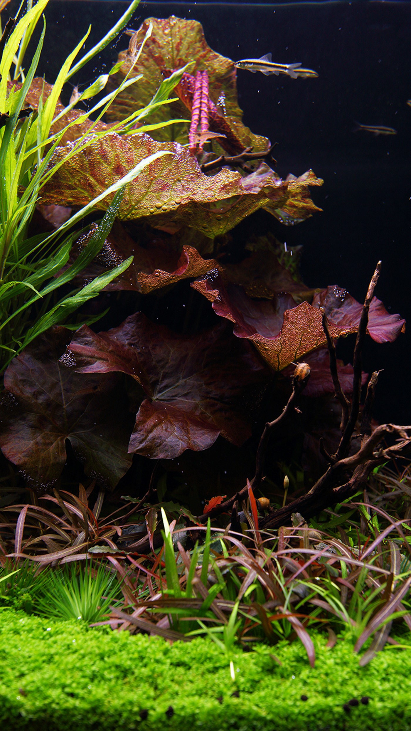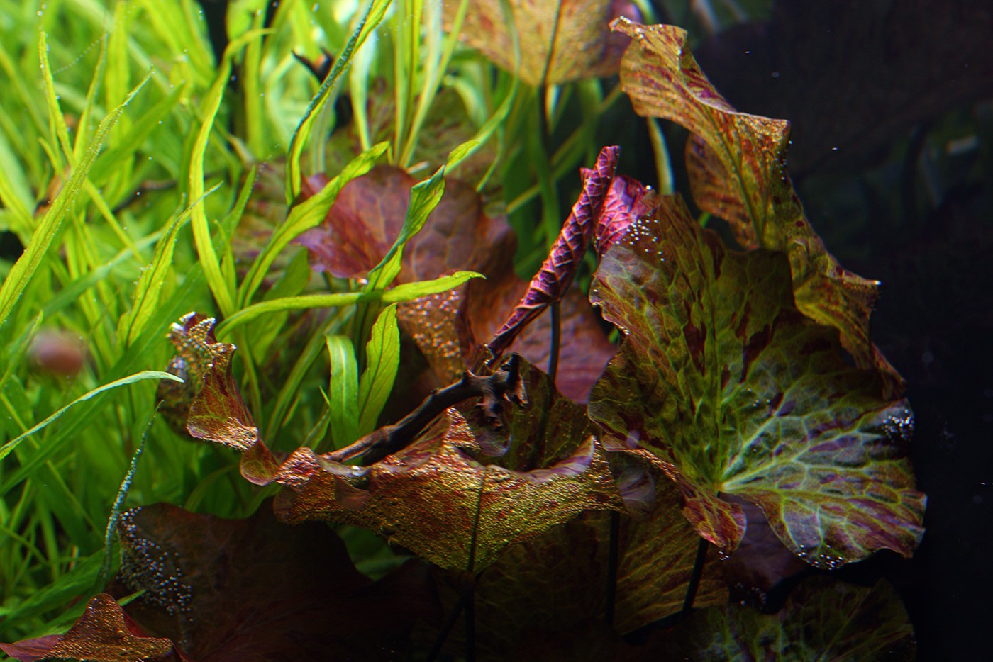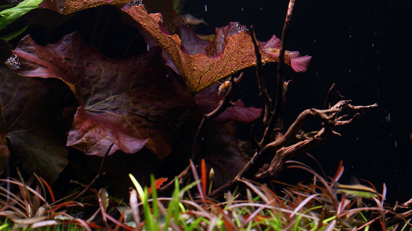 purple-red of Hygrophila araguaia and Nymphaea Lotus.