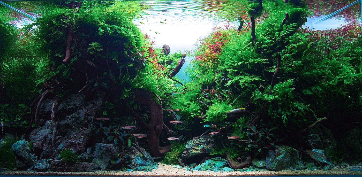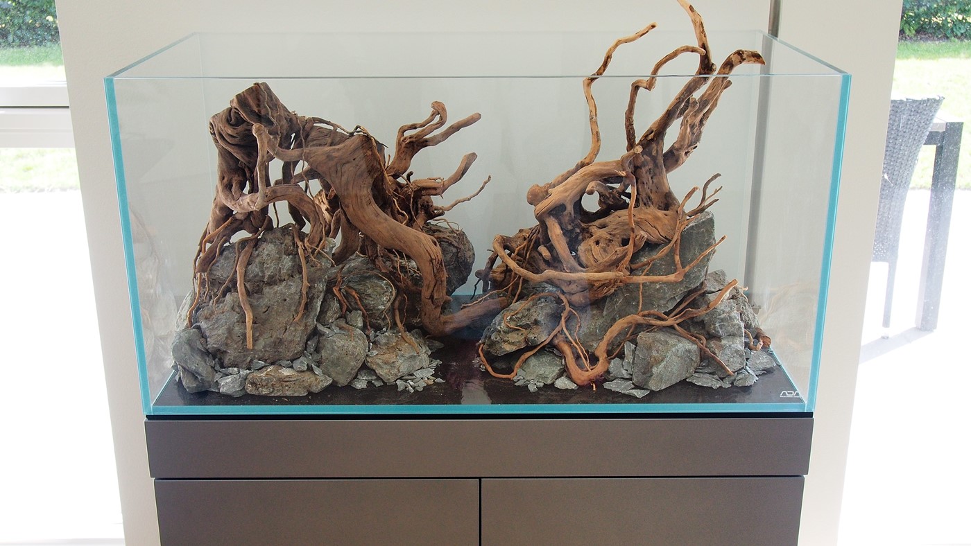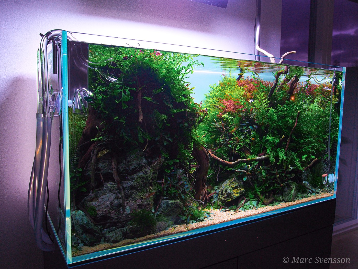 Inspirations came from both a more classic approach to a nature aquarium style of layout, while having a stronger emphasis on detailed use of tiny roots often seen in more dioramic style. I wouldn´t personally call it a fusion, but more of personal take on a classic approach.