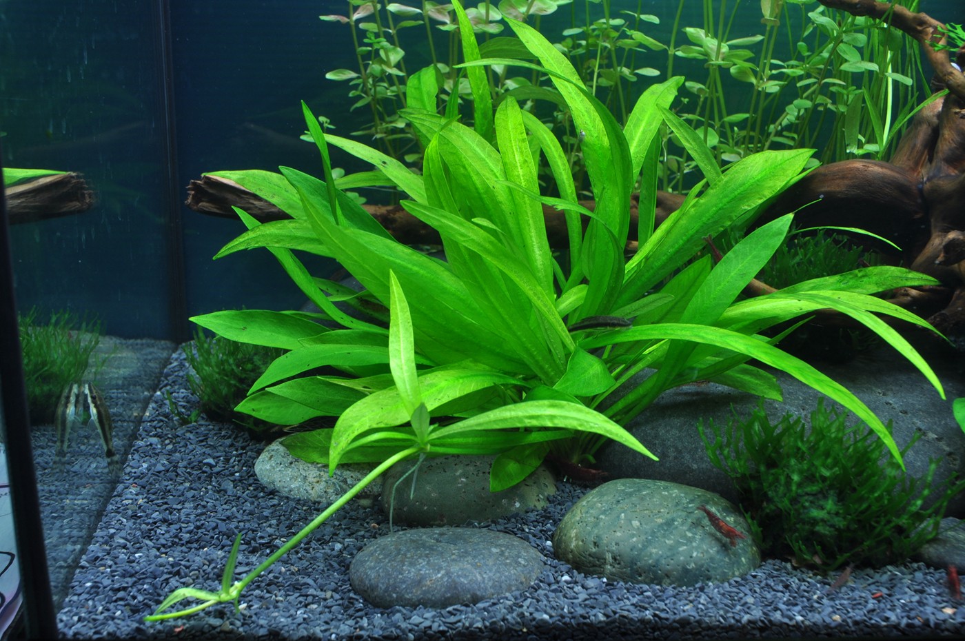 Tips! Allow just the most robust and shadow-tolerant plants under other plants. Here, Anubias and Cryptocoryne Tropica are very shaded under the Microsorum Winde leaves.