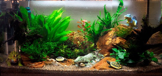 Some of the main considerations when planting the children's aquarium are colours, impact and action. We have chosen a dinosaur/animal layout for this set-up, but you can find a large selection of ornaments at your local shop such as pirates, castles, treasure chests, sunken ships etc. In order to ensure the correct balance in the children's aquarium you will definitely need plants! The number of plants must be adjusted to the number of fish. It should be plants that easily adapt to the environment and that help the water to stay clean and algae free. Below we listed a selection of both fast and slow growing species that are all good starter plants.