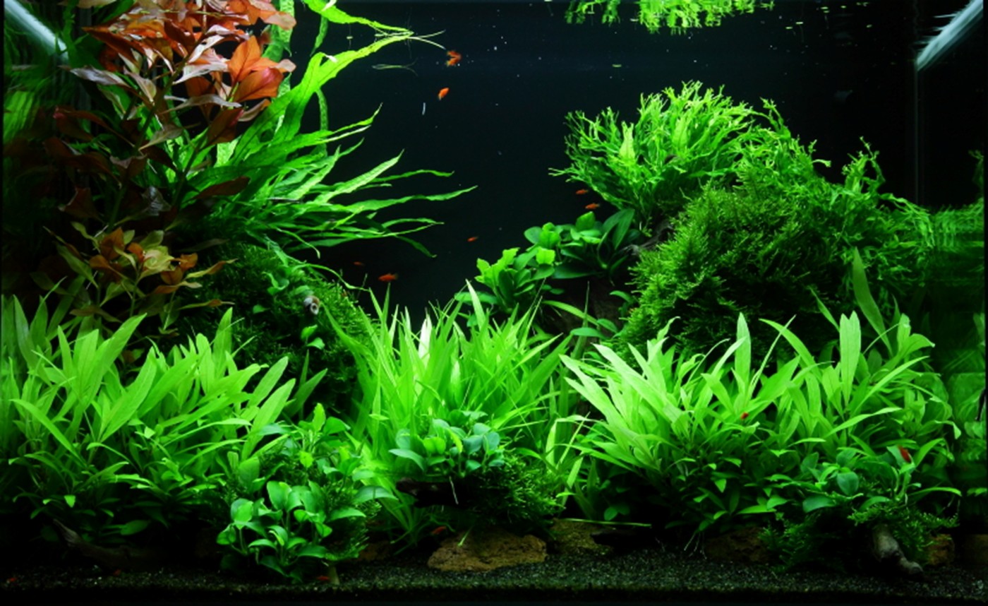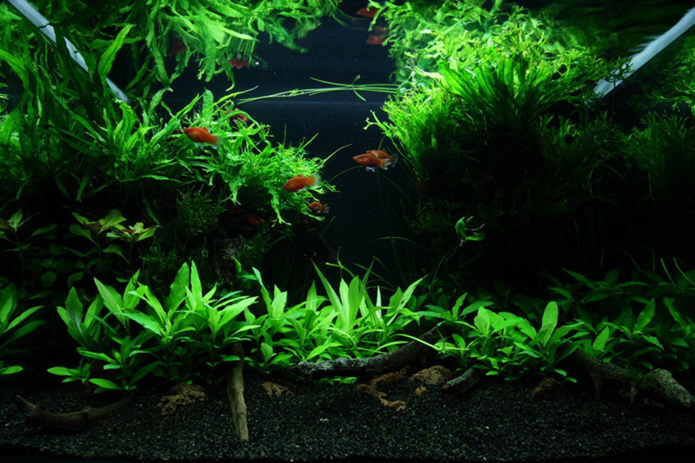 Tip! The obvious choice are small shoal fish with a reflection effect for this kind of aquarium, such as e.g. glowlight tetra (Hemigrammus erythrozonus) or neon tetra (Cheirodon axelrodii).