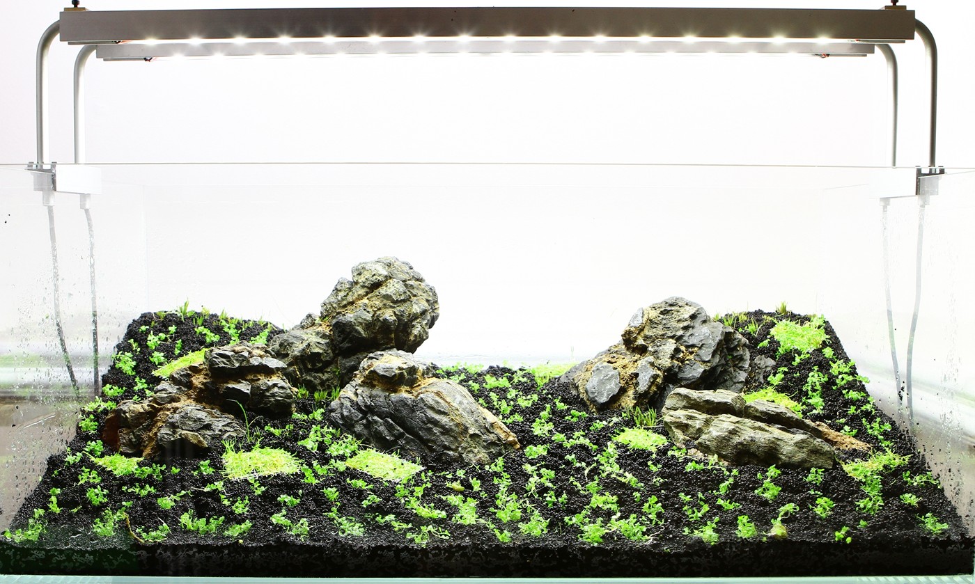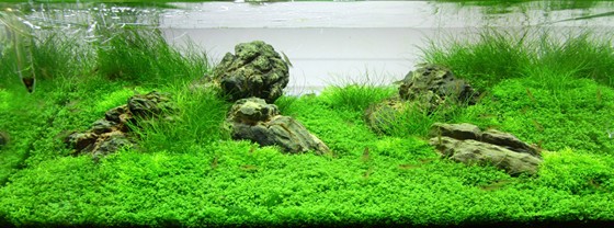 Some well-chosen and carefully placed rocks, as well as Riccia, Hemianthus Cuba and Eleocharis. That's in fact all, in order to create this clean, vigorous meadow. You can almost hear the bees humming and you feel like going up to see, what's behind the horizon.