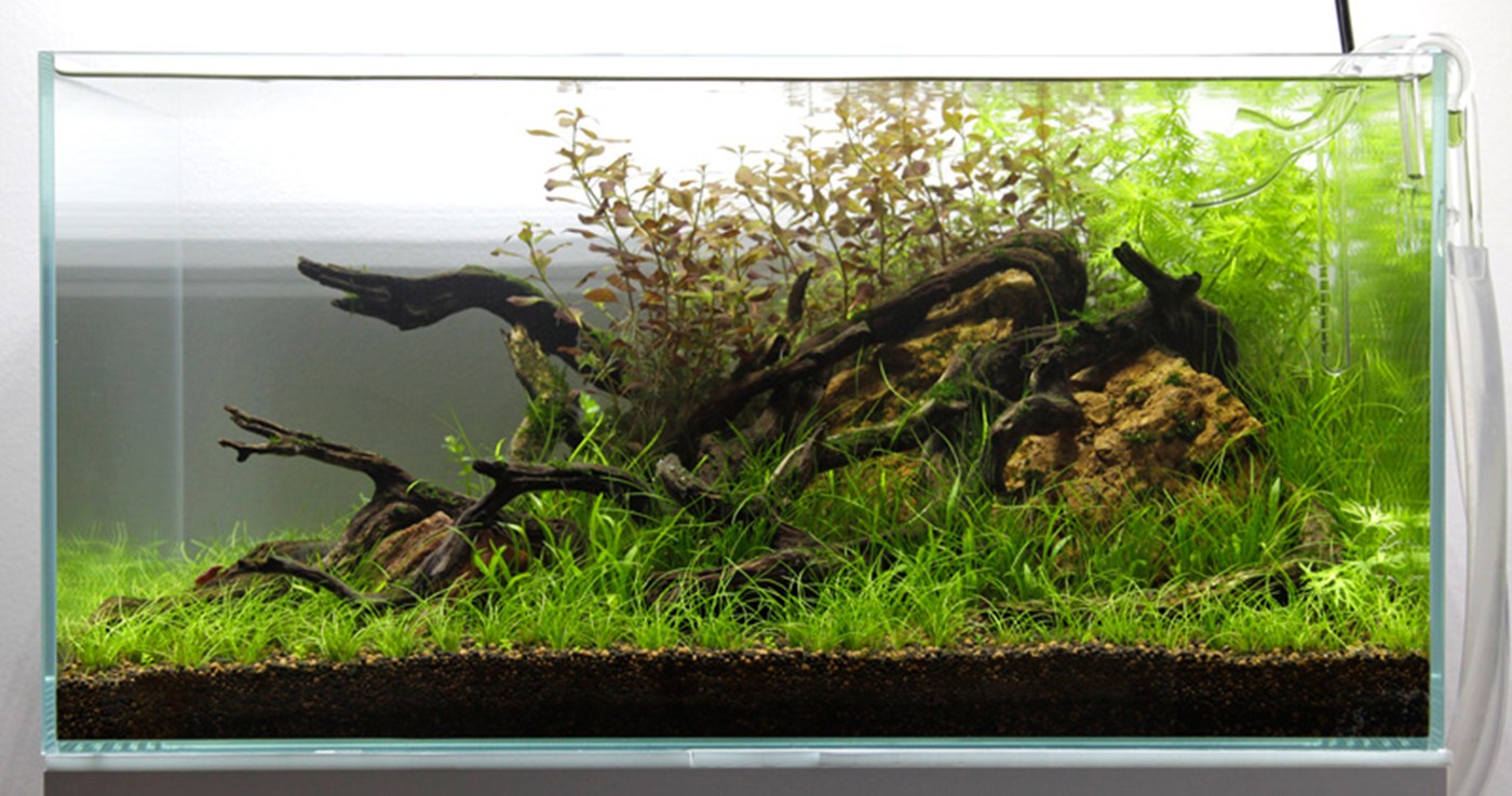 Later in the aquascape's life I changed and added new plants. The best addition was Hemianthus 'Cuba' that has mixed with the mini hairgrass very nicely making a lovely texure in the foreground.