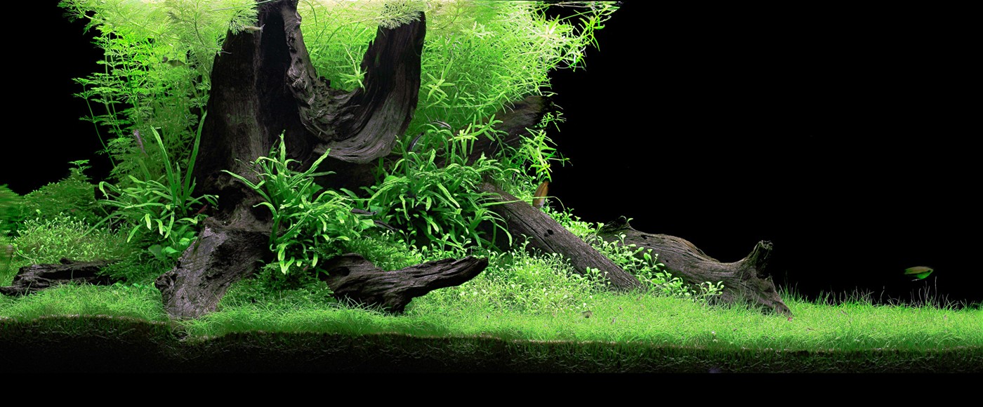 All are plants, which enhance the effect, but require regular trimming. At the base, moss, Anubias and Microsorum, create a passage to the beautiful green plain along with Marsilea Hirsuta and Glossostigma Elatinoides, which Eleocharis 'Mini' has created in only few months.