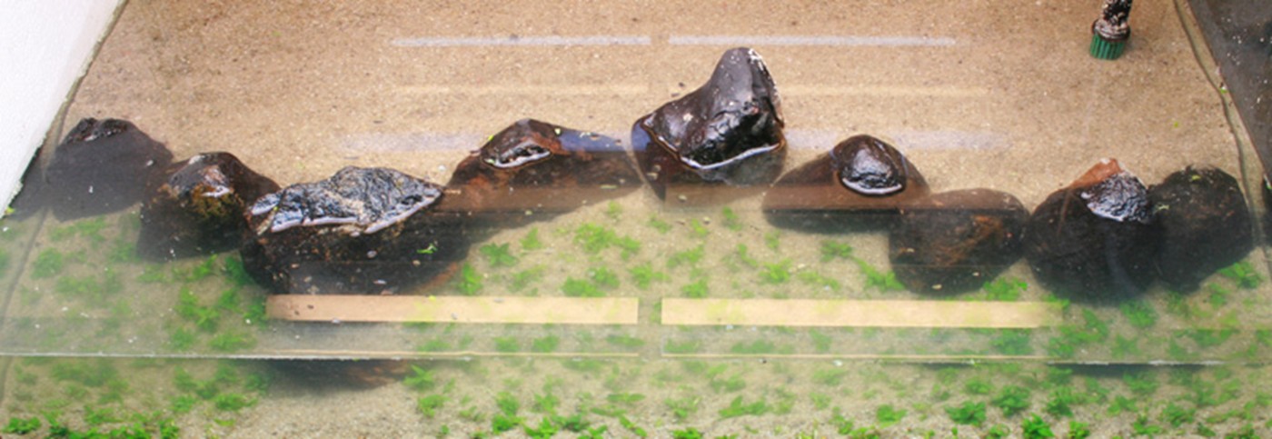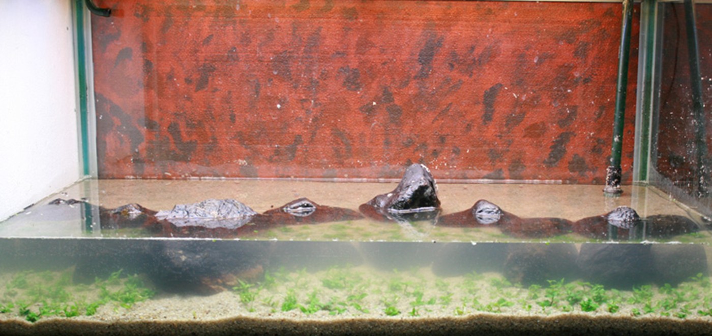 The aquarium is inspired by white sandy beaches with few plants spreading from the jungle in the background.