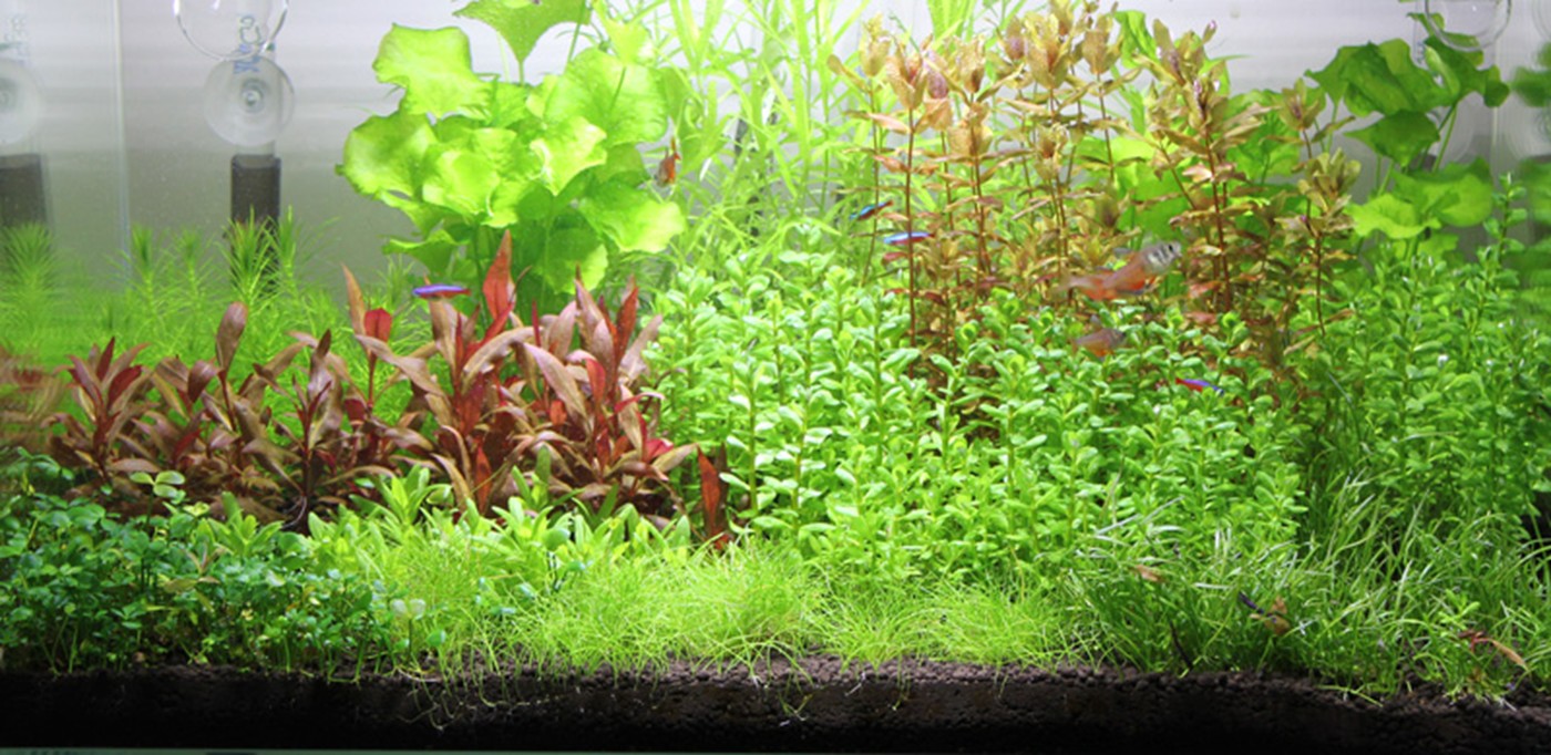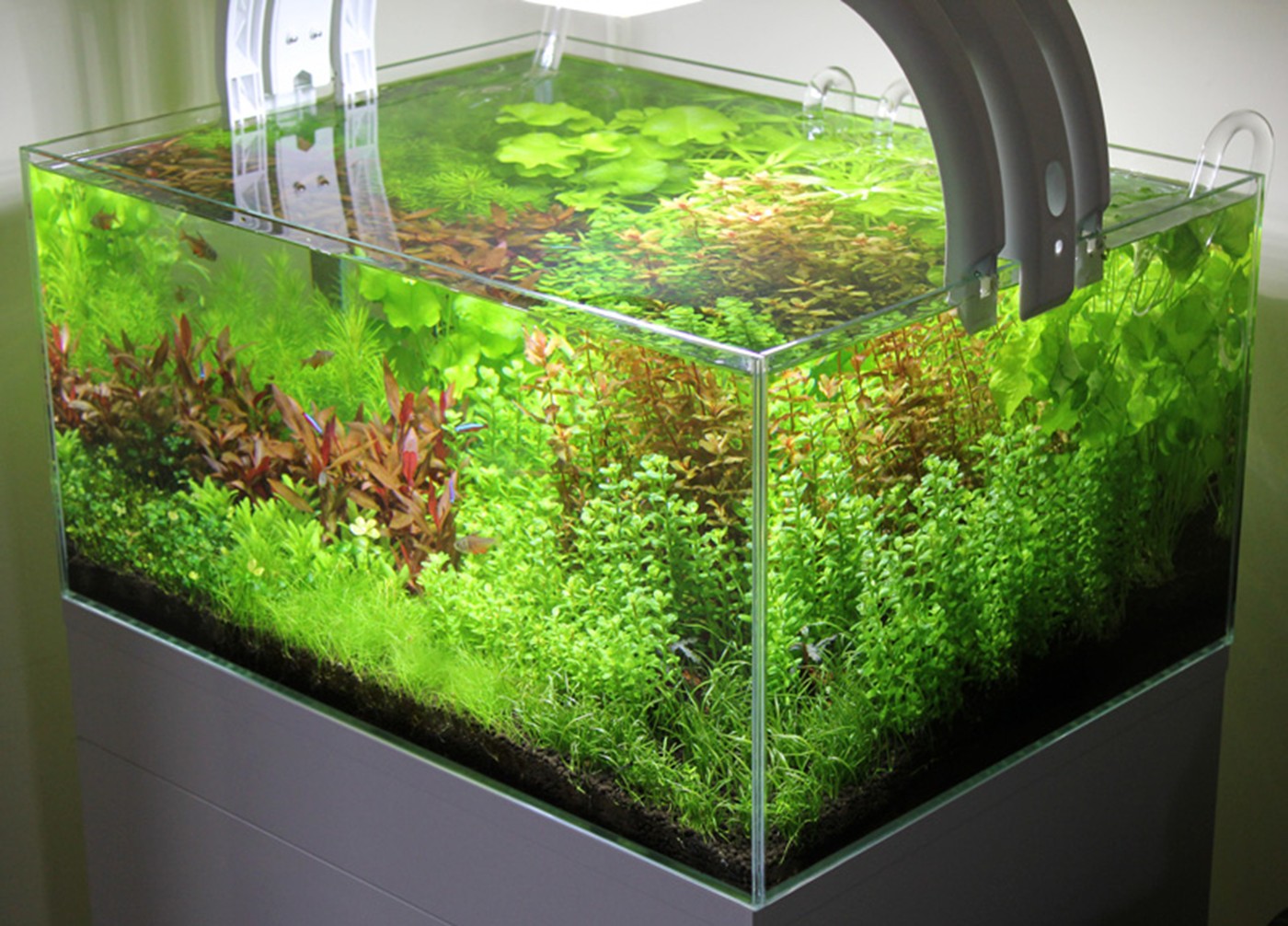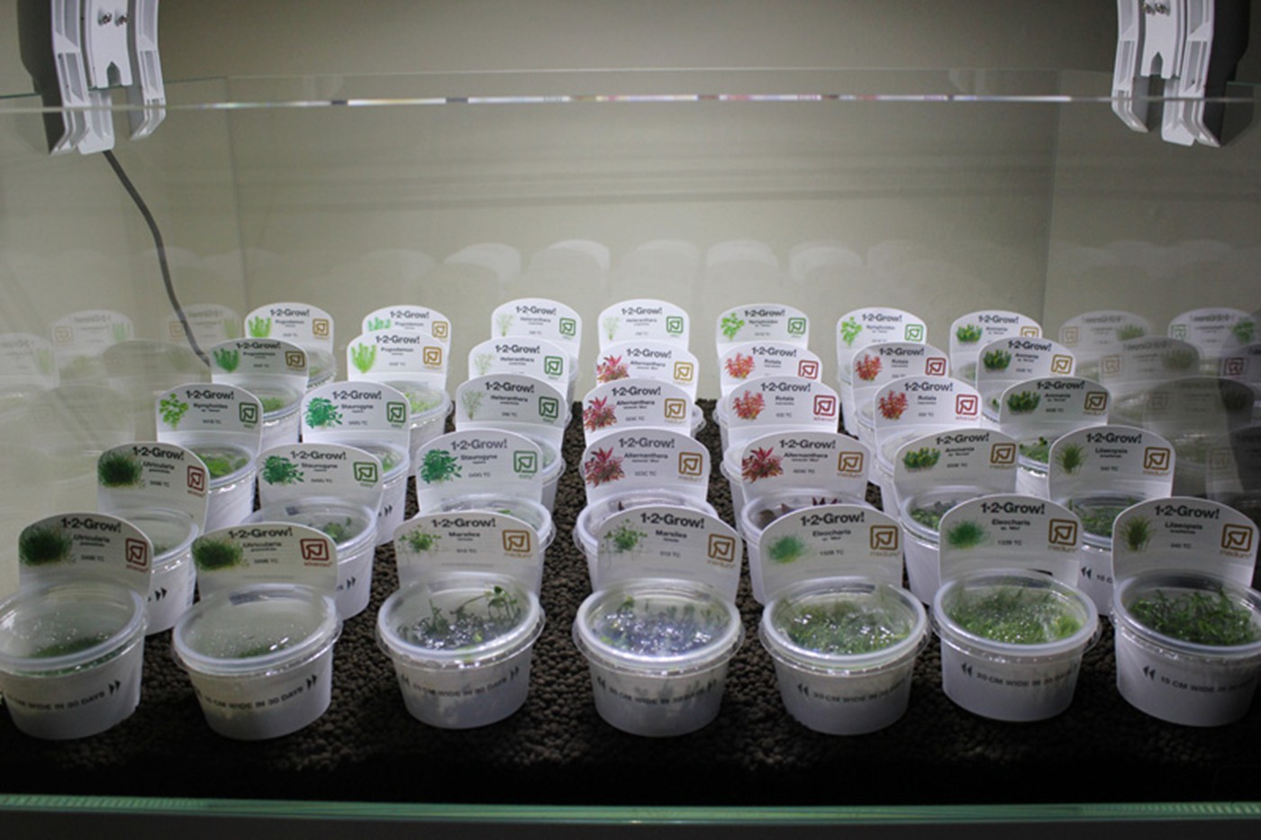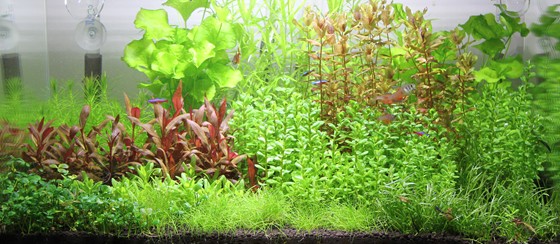 This aquascape/aquarium was inspired by the classic Dutch themed aquariums. Although it doesn't conform to many of the rules of the Dutch method of aquascaping, it shows how 1-2 grow plants can be used to good effect without using any hardscape. It was interesting to see how the 1-2 grow plants performed in an aquarium without any classic potted species of plants. The different textures and colours of the 1-2 grow plants were very striking as you walked into the room. The fish health and water quality was tremendous due to the high plant mass.