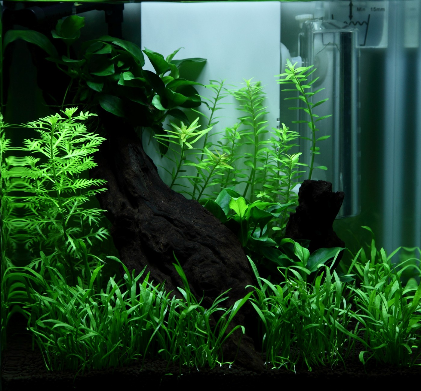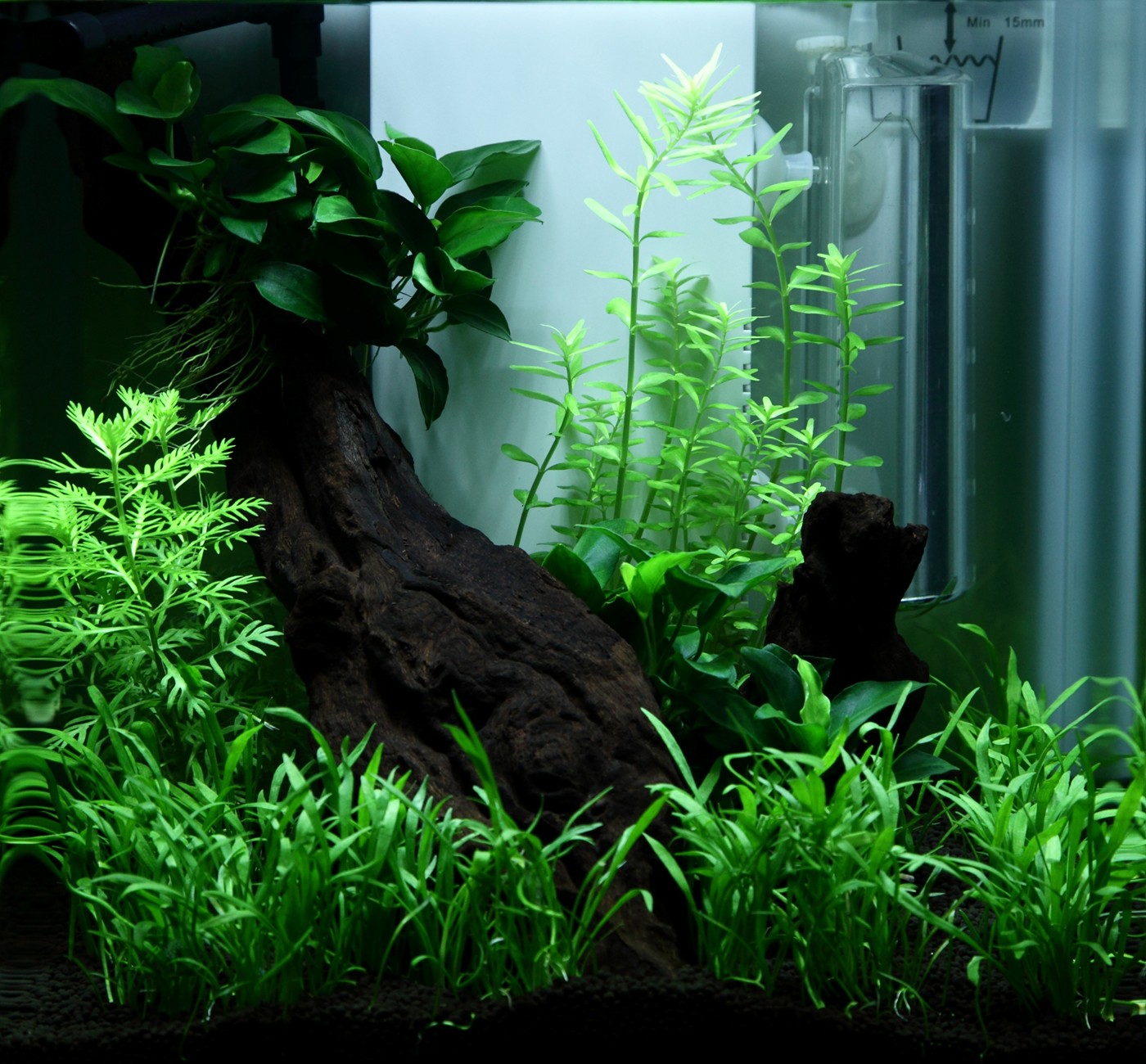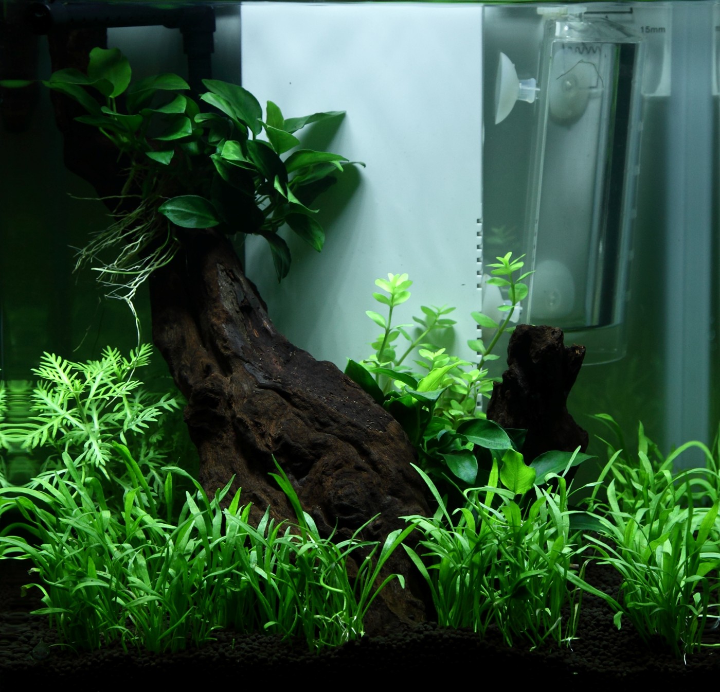 A diagonal mangrove root creates coherence, depth and fine growing conditions for Anubias 'Petite'.