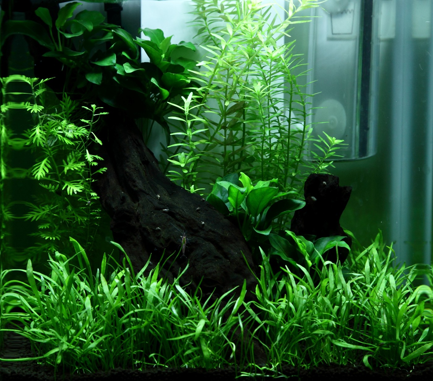 This aquarium does not have an awful lot of light, but the quadratic layout ensures uniform light distribution.