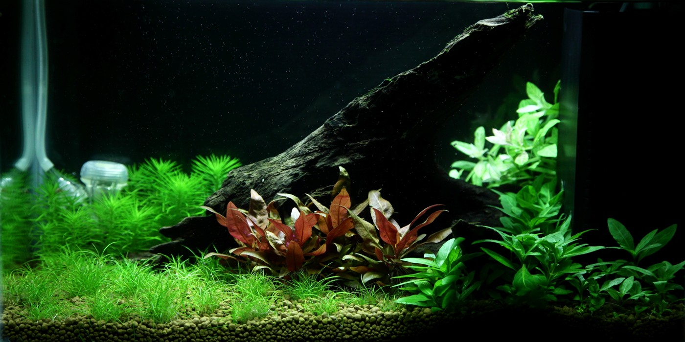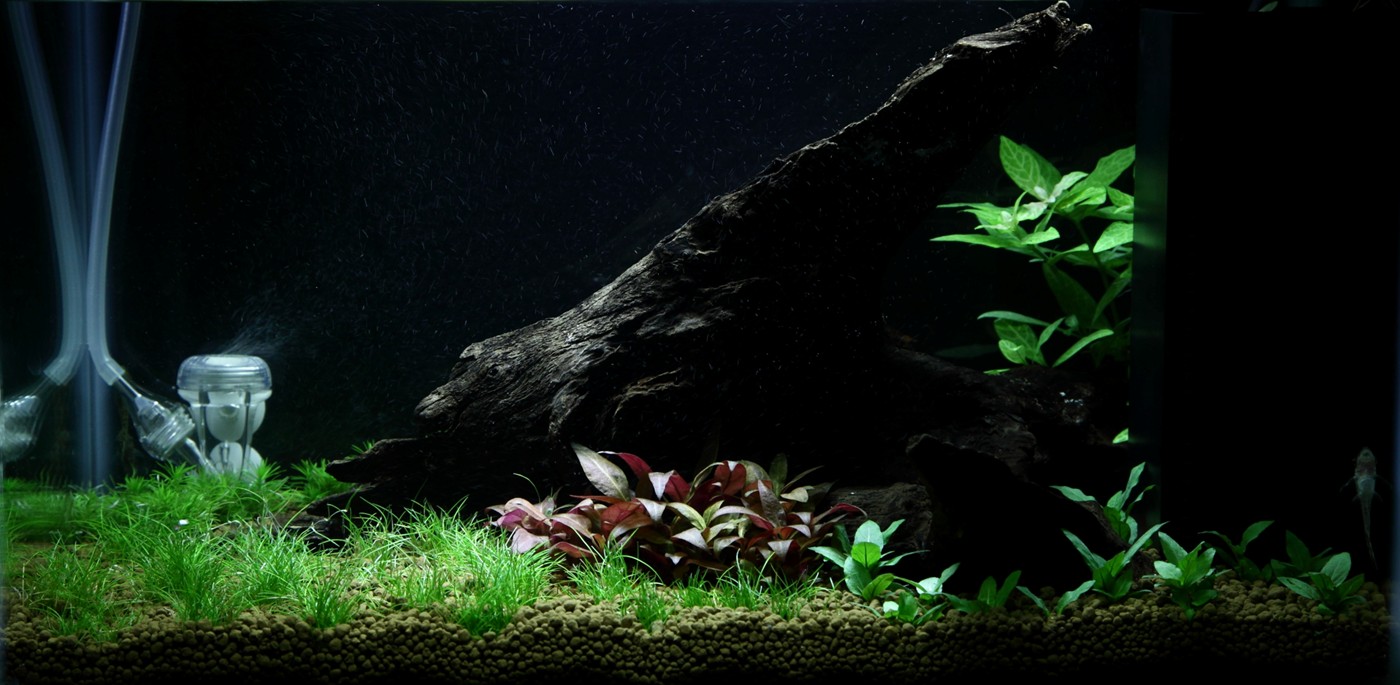 The light distribution is extremely centred in this oblong aquarium, which results in quite shady corners.