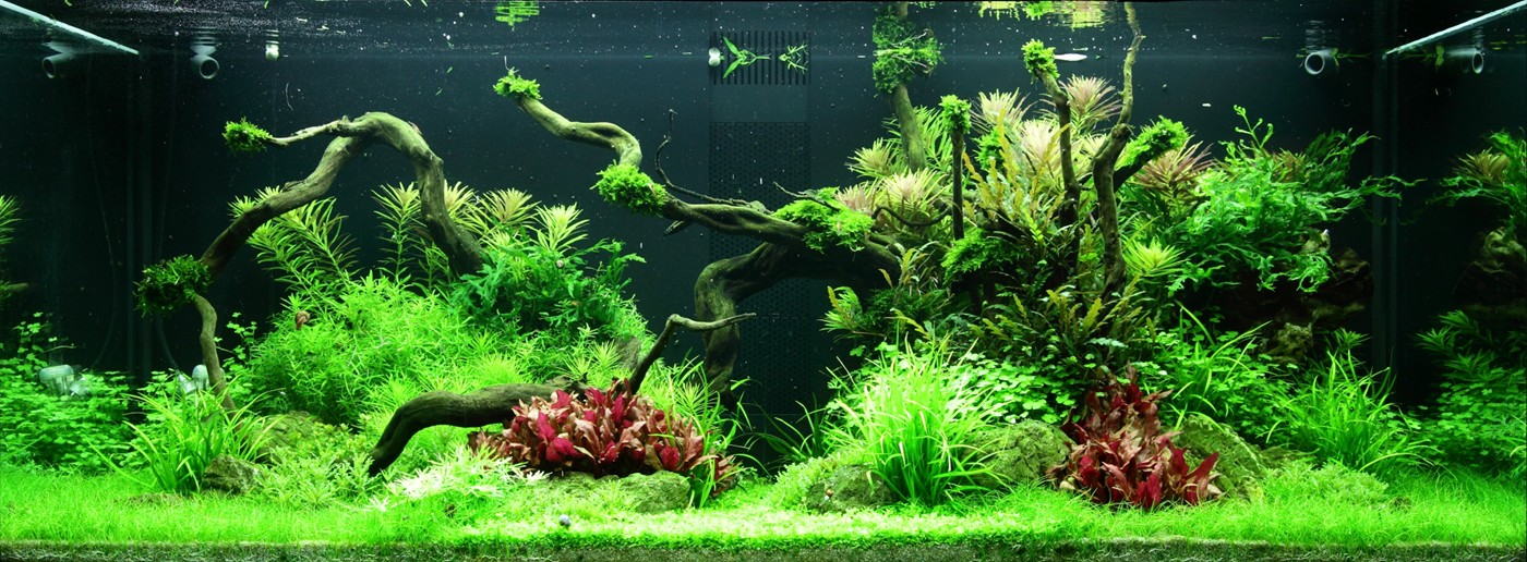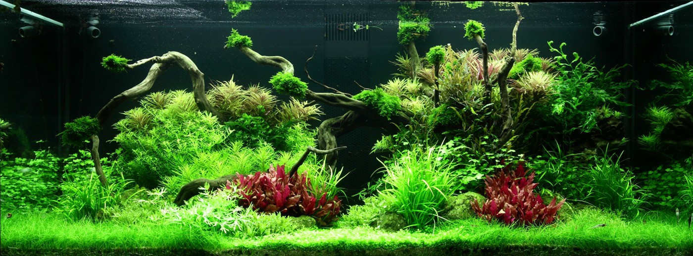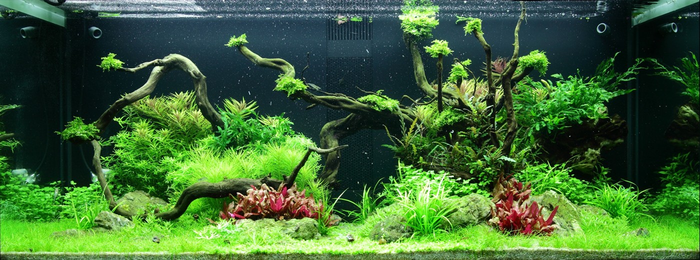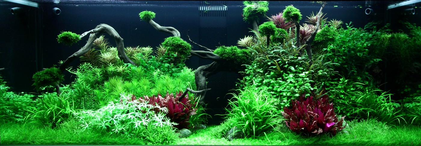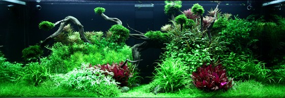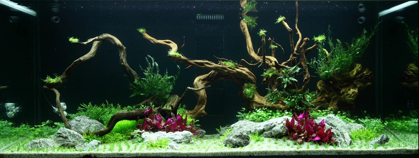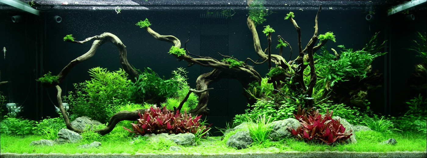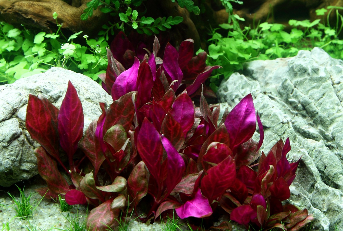The strong pink colour of Alternanthera 'Rosanervig' is beautifully reflected in Limnophila Hippuridoides above it. Massive and regular cutting is essential, in order to maintain the expression and making sure that all plant groups grow vigorously.